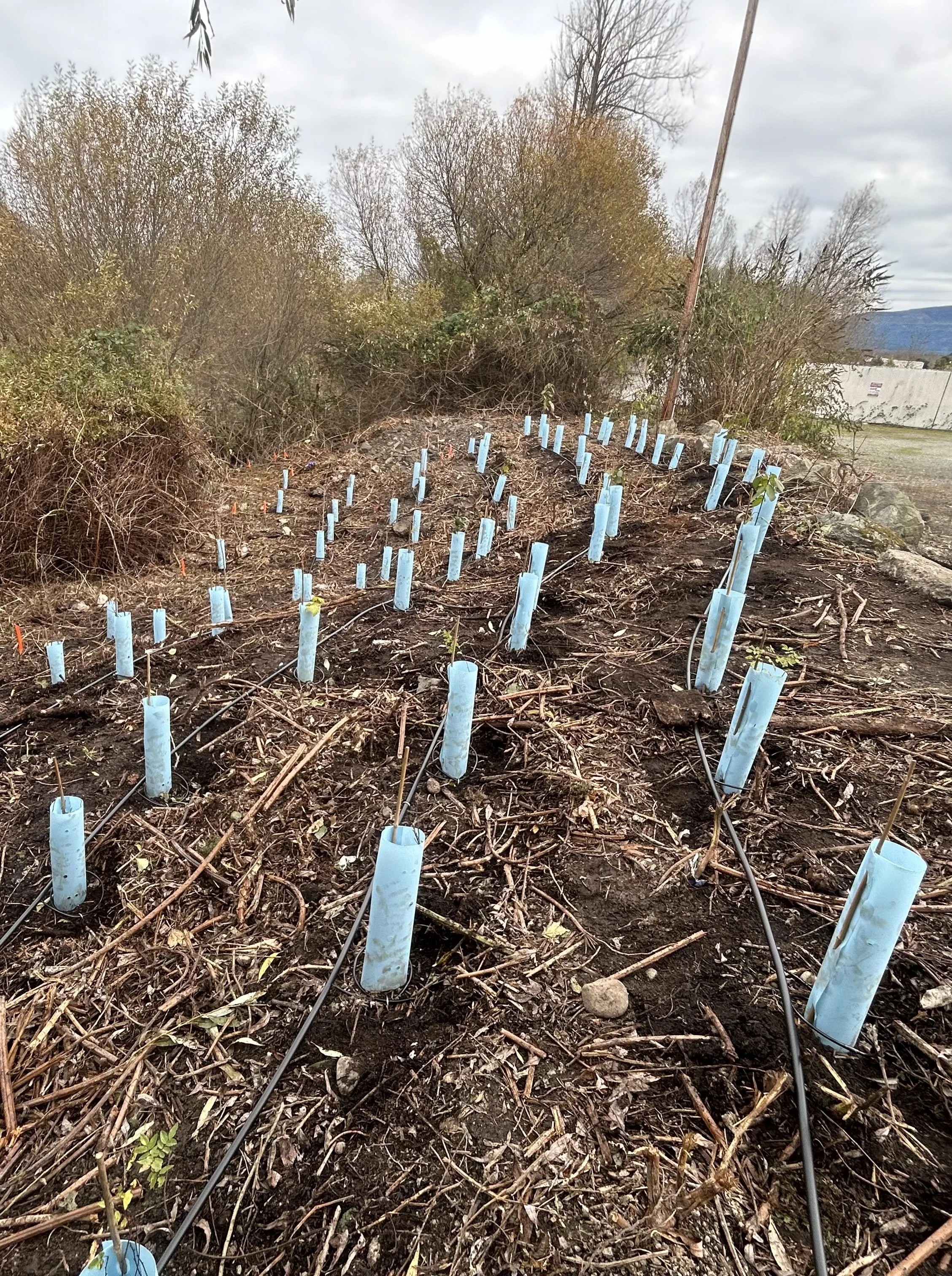 Native tree and shrub planting in habitat restoration and mitigation sites are services we offer. We plant bare root, live stakes and container stock sourced from local wholesale nurseries. We are happy to help you create a planting plan based on your project needs.